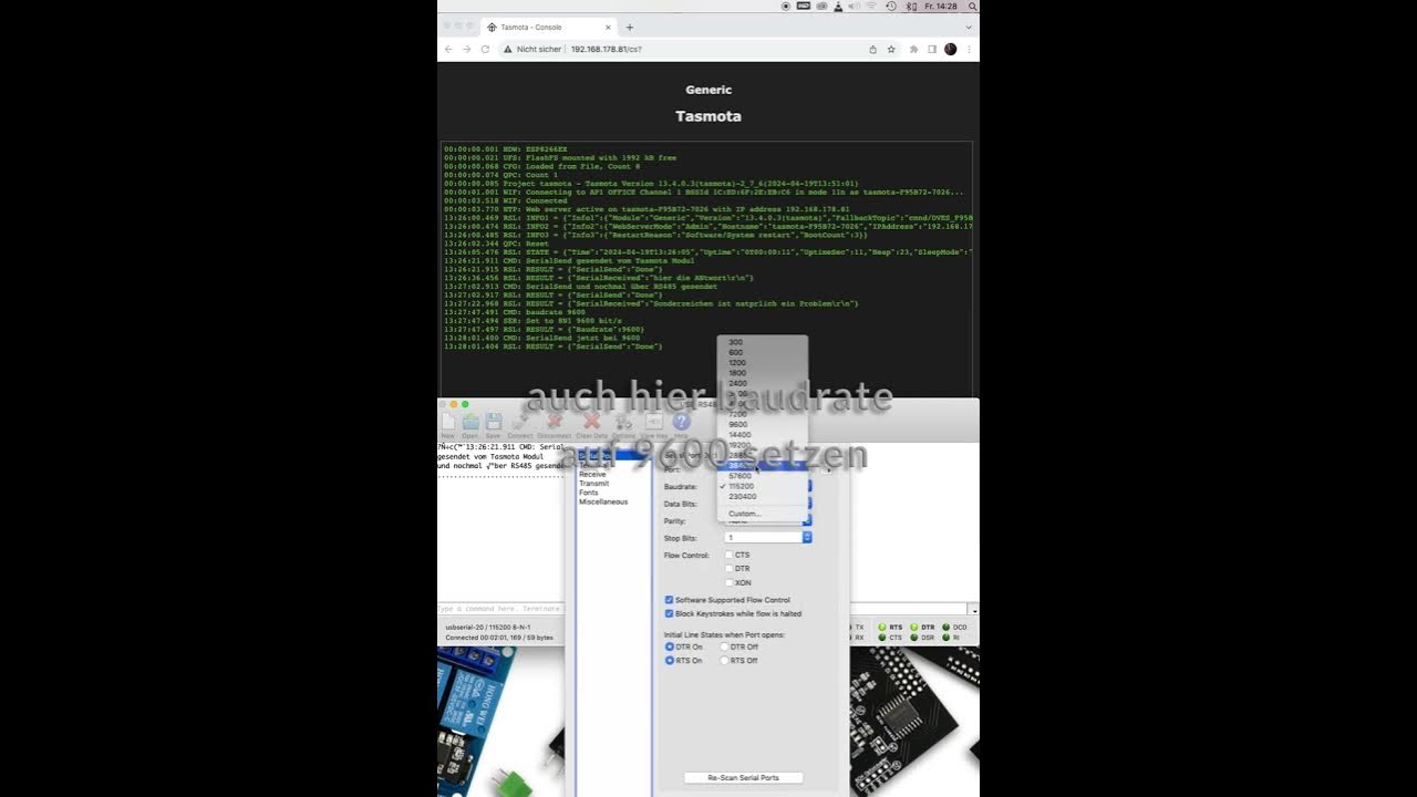– Baudrate (9600) und Config (8N1) habe ich eingestellt und überprüft